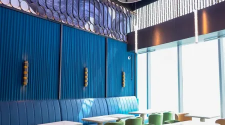 Our latest restaurant fitout project for All Day Dining – Tobb redefines the dining ambiance by seamlessly blending functionality with aesthetic appeal. Every element, from flooring, wall partitions, gypsum ceiling, expert joinery, glass partitions, solid surfaces, and custom-made furniture to MEP services, has been meticulously crafted to create a cohesive and immersive dining experience.