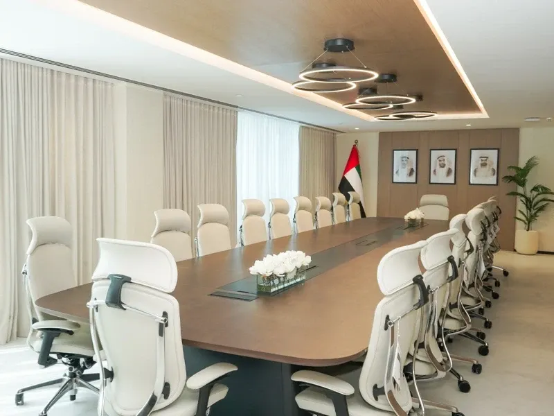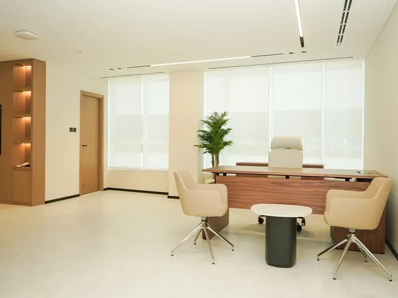 This recently completed office fit-out for Etimad Holding LLC at Abu Dhabi Business Hub delivers a contemporary workspace designed to support both performance and executive presence.